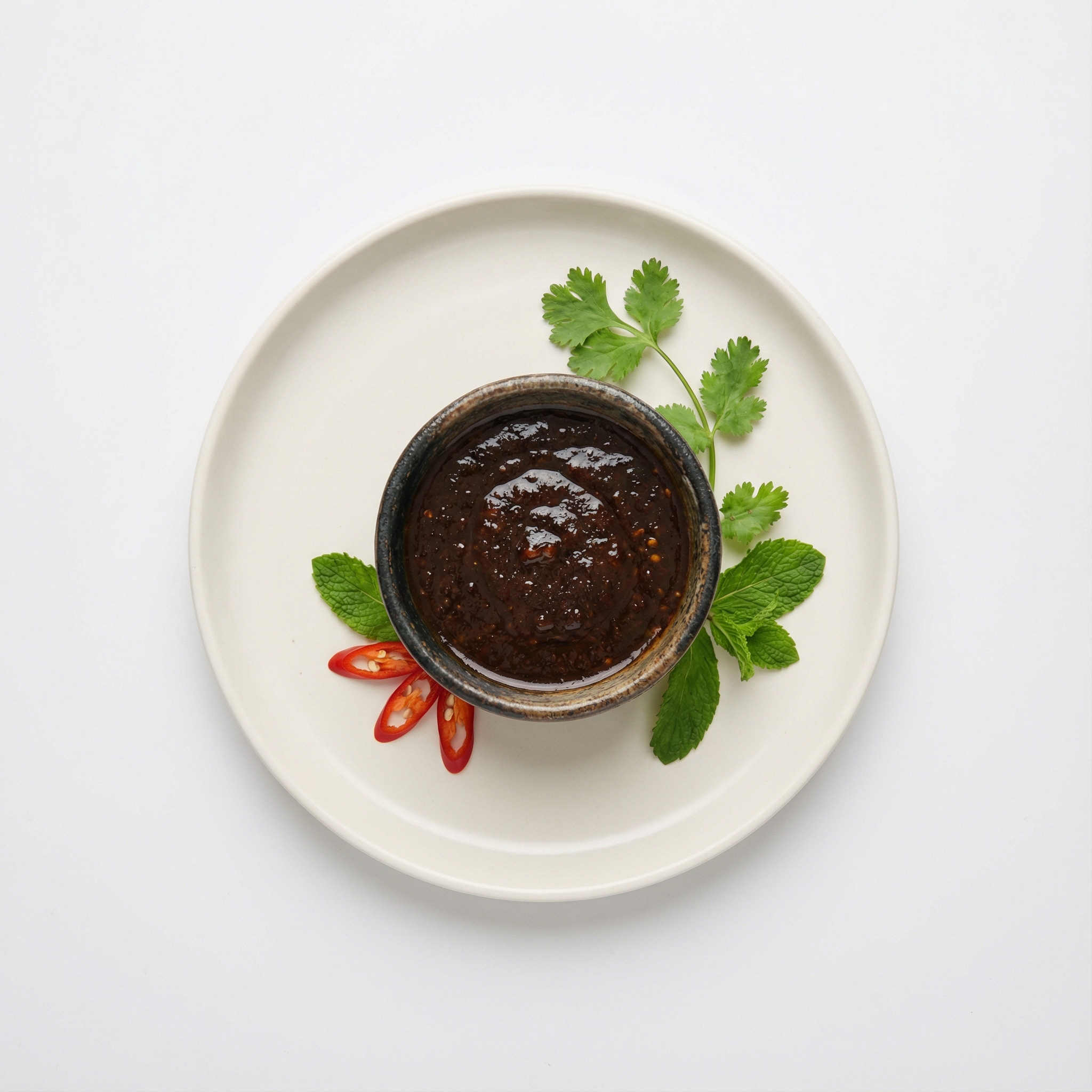 "Nước chấm Tây Bắc truyền thống, đặc sánh, ớt khô rang, tỏi, mắc khén, không thể thiếu khi ăn thịt gác bếp."